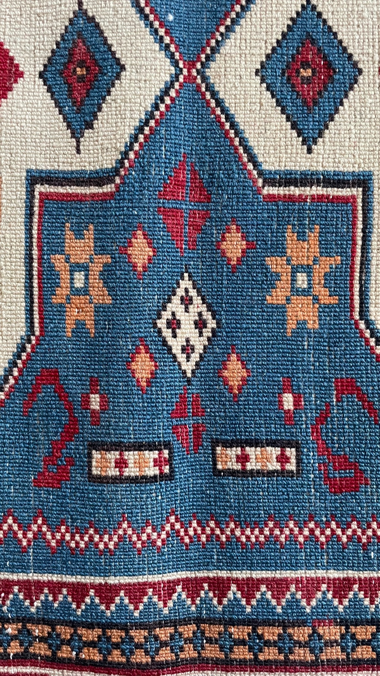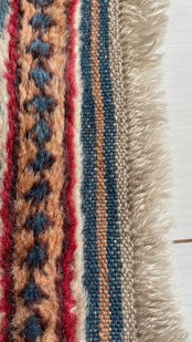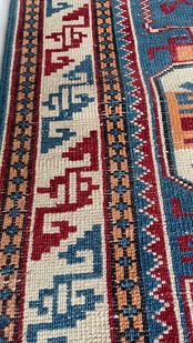 ギザギザ模様や星の形など、細部まで織り手さんのこだわりを見せた絨毯ですね!