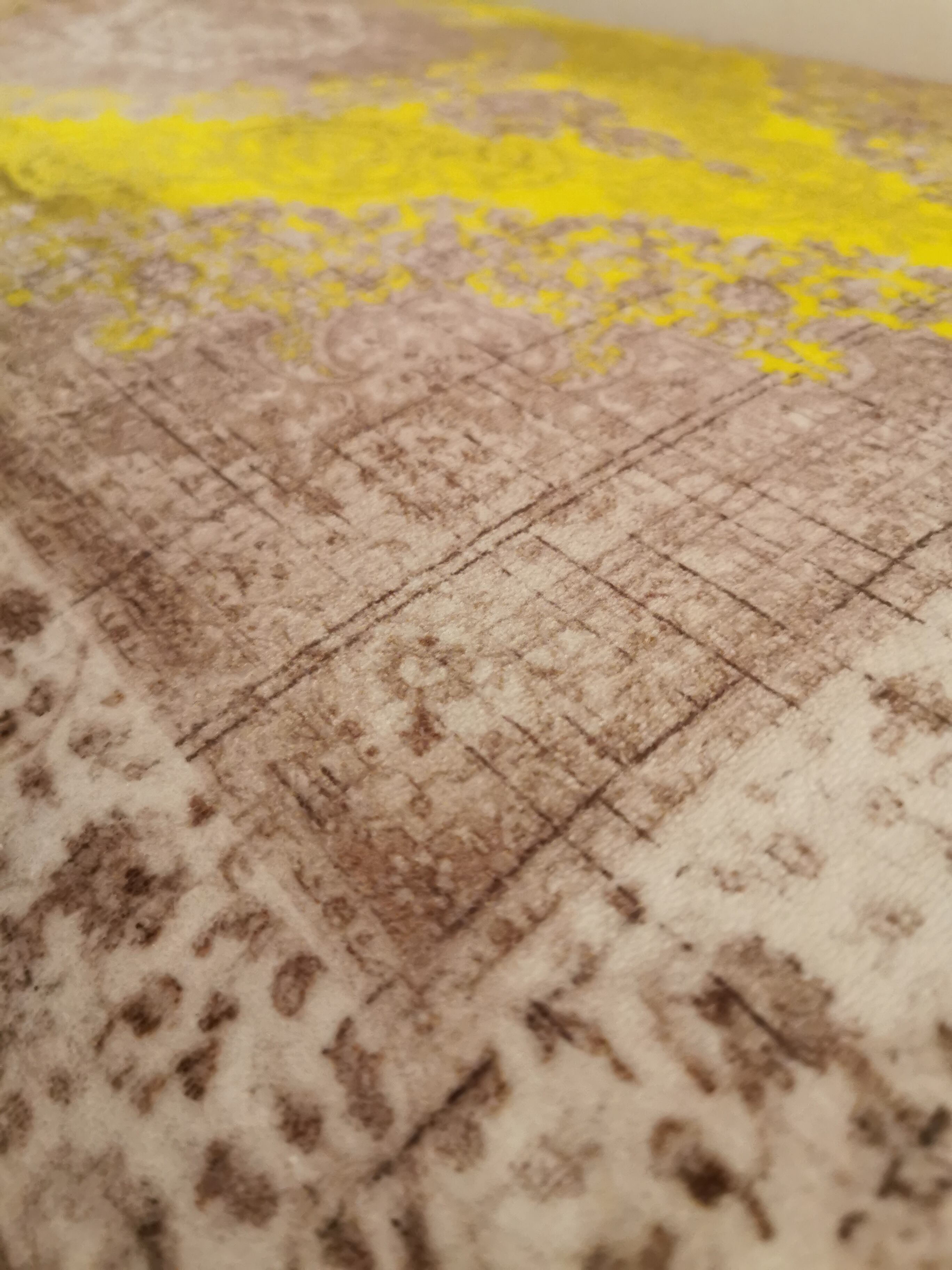 黄色が使われる絨毯は珍しく、中央の星形のメダリオンもかわいらしいです。